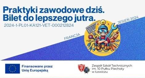 Projekt "Praktyki zawodowe dziś. Bilet do lepszego jutra." o numerze 2024-1-PL01-KA121-VET-000212824 realizowanego w ramach programu Erasmus+, sektor
